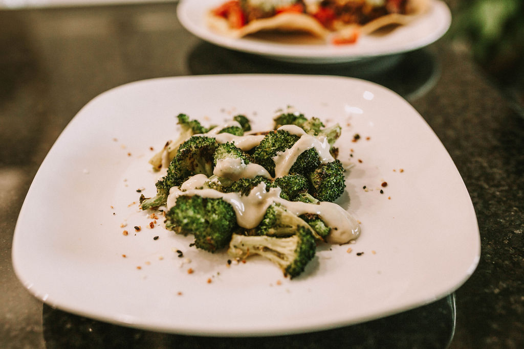 Roasted Broccoli with Mexican Cheese Sauce (plant based)